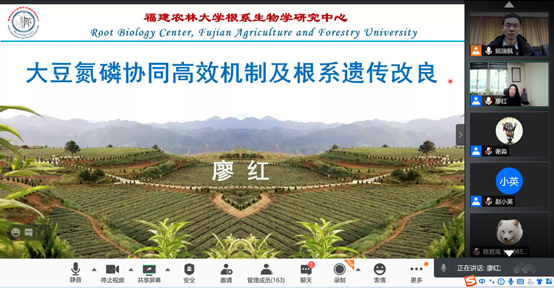 姚瑞枫教授邀请,在线作《大豆氮磷养分协同高效机制及根系遗传改良》及《茶树适应酸性土壤的机制和应用》的学术报告,并与我院师生进行了热烈的学术讨论。本次报告由姚瑞枫教授主持,黄色导航