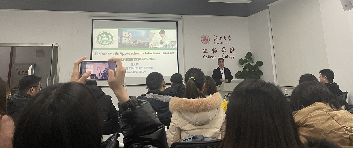 近日中国医学科学院生物医学大数据中心主任蒋太交教授应邀来我院进行学术交流,并做题为“传染病防控的生物信息学策略” 的精彩学术报告。