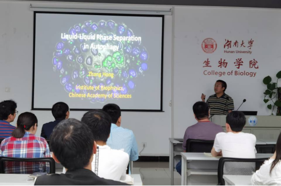 2021年5月26日下午14:30,中国科学院生物物理研究所张宏研究员应邀为我院师生做了题为“liquid-liquid phase separation in autophagy”的学术报告。该讲座在黄色导航