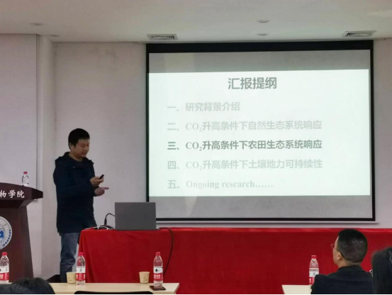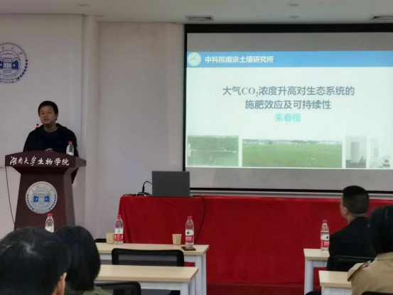 2023年4月7日上午,中科院南京土壤所朱春梧研究员应邀来我院进行学术交流,为我院师生介绍其研究团队在“大气CO2浓度升高对生态系统的施肥效应及可持续性”方面的研究工作。本次报告由于峰教授主持,黄色导航