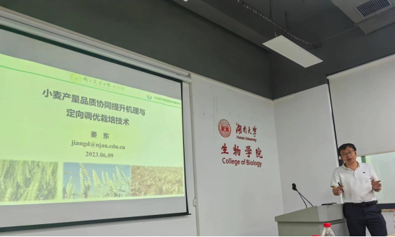 2023年6月9日下午,南京农业大学农学院姜东教授来我院莅临指导,在黄色导航