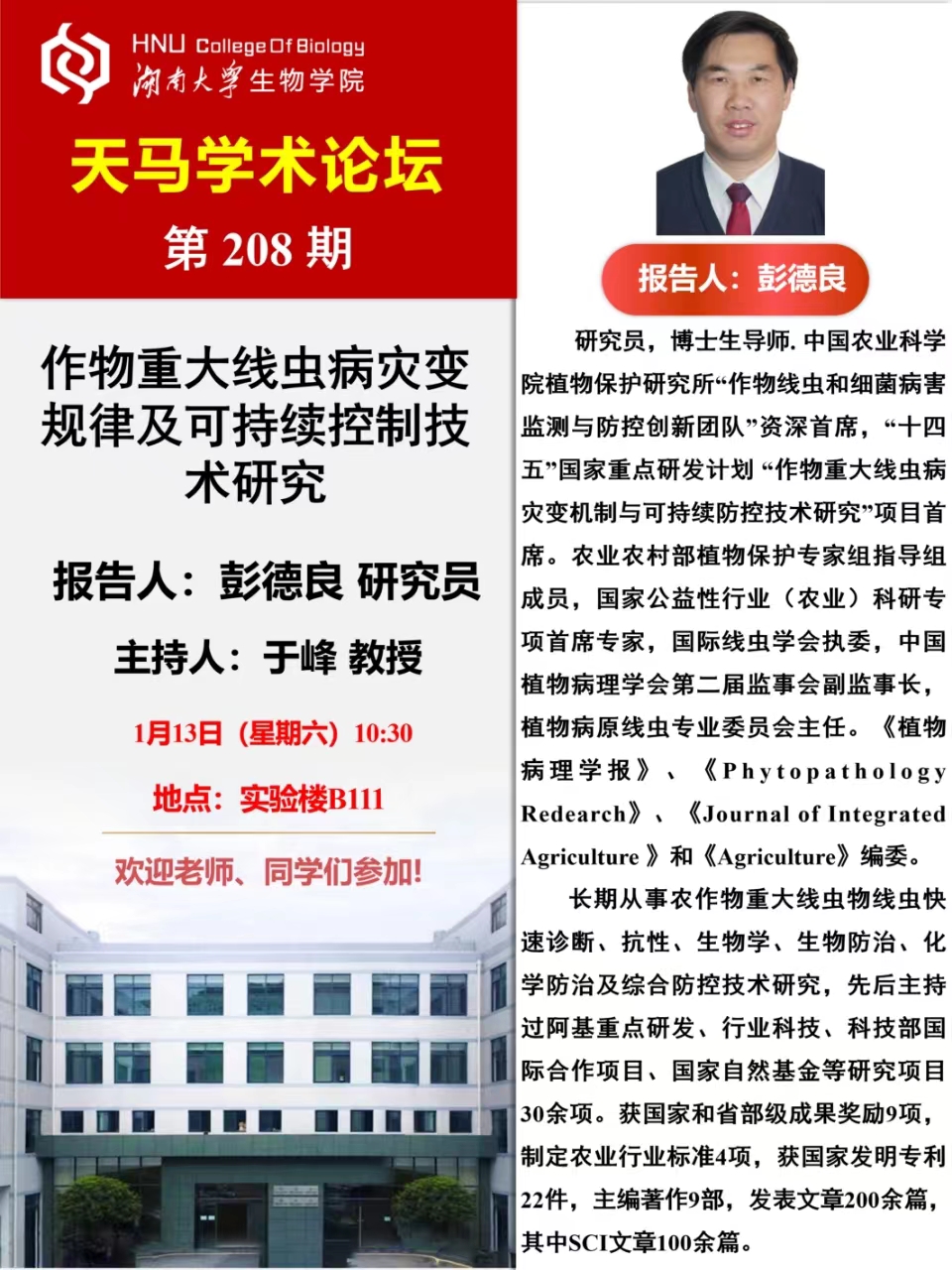 天马学术论坛 第208期--中国农业科学院研究员