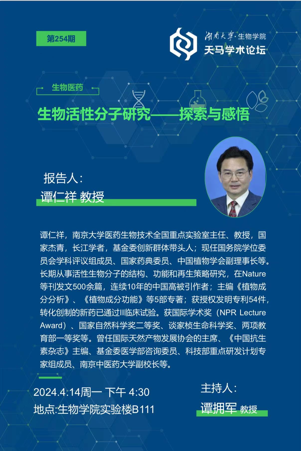天马学术论坛 第254期 南京大学 谭仁祥教授