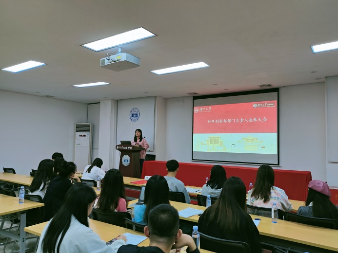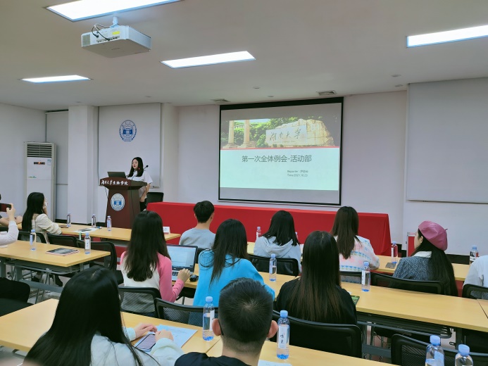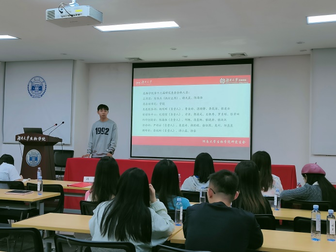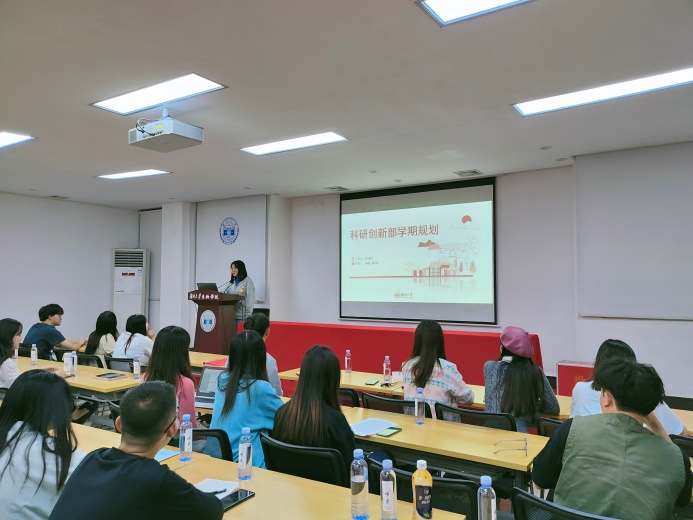 为促进部门之间的了解,研会的各位部长为大家介绍了各部门成员组成、部门职能以及后续工作计划。发展服务部部长杨琛晖、新媒体中心部长纪俏俏、科研创新部负责人陈海雁、活动部部长尹彩云以及调研部部长李瑞娜着重介绍了各自部门的工作职能,回顾了以往的主要工作并为下一阶段的工作建设做好了规划,加强了研会成员对研会工作动态的关注。
