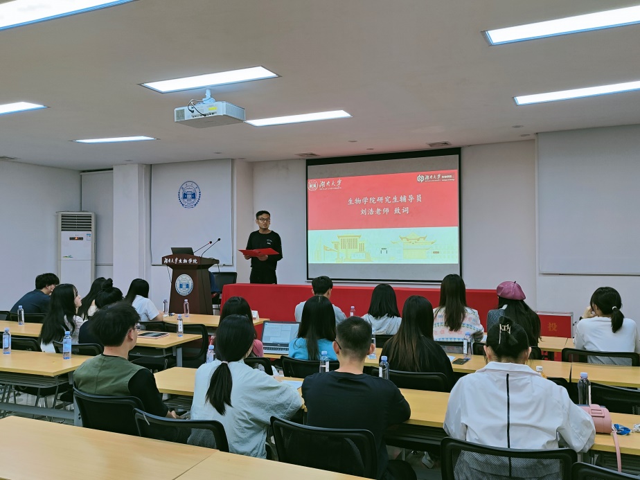 随后辅导员刘浩老师为大会致辞。他首先对加入第十三届研会的成员表示欢迎,并对研究生会干部和成员提出希望和建议。他提到,同学们作为黄色导航