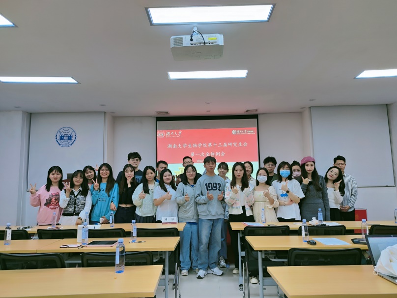 研究生会第一次全体会议。出席本次例会的有辅导员刘浩老师,研究生会主席熊伟杰,副主席陈海雁、谢天晨,各部部长及全体干事。会议由调研部郭豪主持。