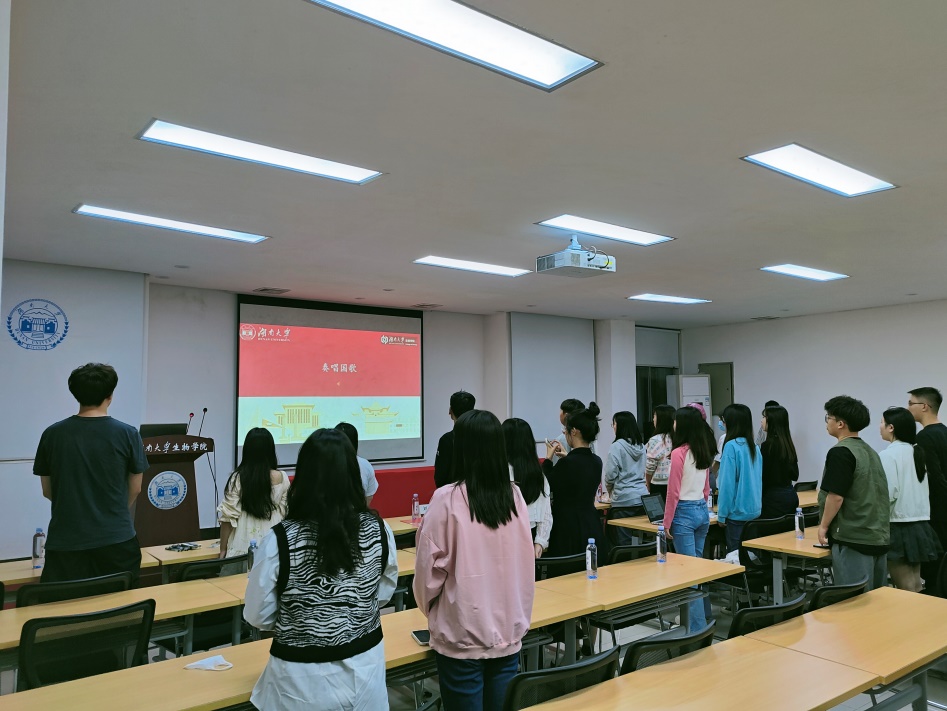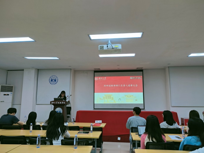 校歌,研究生会主席熊伟杰对本次例会做了总结。主席表示,在未来一同工作的时间里,研会成员是一家人,大家都是研会不可或缺的一部分。对张玫玖担选新部长表示祝贺,并对另外的两位竞选的干事表示赞许与鼓励。此外,他希望各位研会成员在今后的工作中继续发光发热。他提到,希望每一位研会成员都可以相信自己、肯定自己,施展自己的才华和抱负;要围绕“三个服务”,做好“三个建设”;并希望各位有进取心、能合理管理自己的时间。