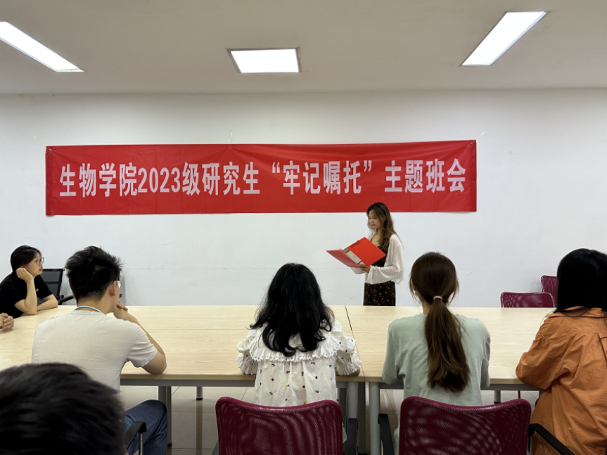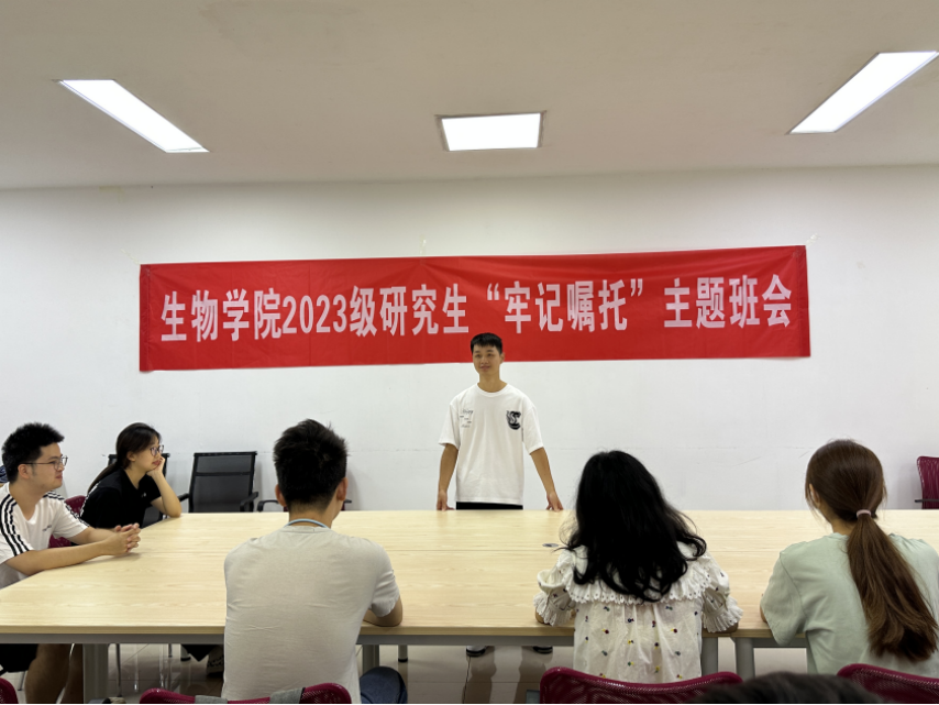 重要讲话、对青年大学生寄语等内容进行教育宣讲。号召全体学生深入领会习近平总书记重要讲话精神,坚定不移地听党话、跟党走,把个人的理想追求融入党和国家事业之中,心怀理想、脚踏实地,争做挺膺担当的新时代青年。随后,申骏雄同学以青年视角切入,结合自身经历,分享了一个个砥砺奋斗、勇于担当作为、立足岗位建功的青春故事,用生动的语言、感人的事迹,引发现场学生阵阵掌声。