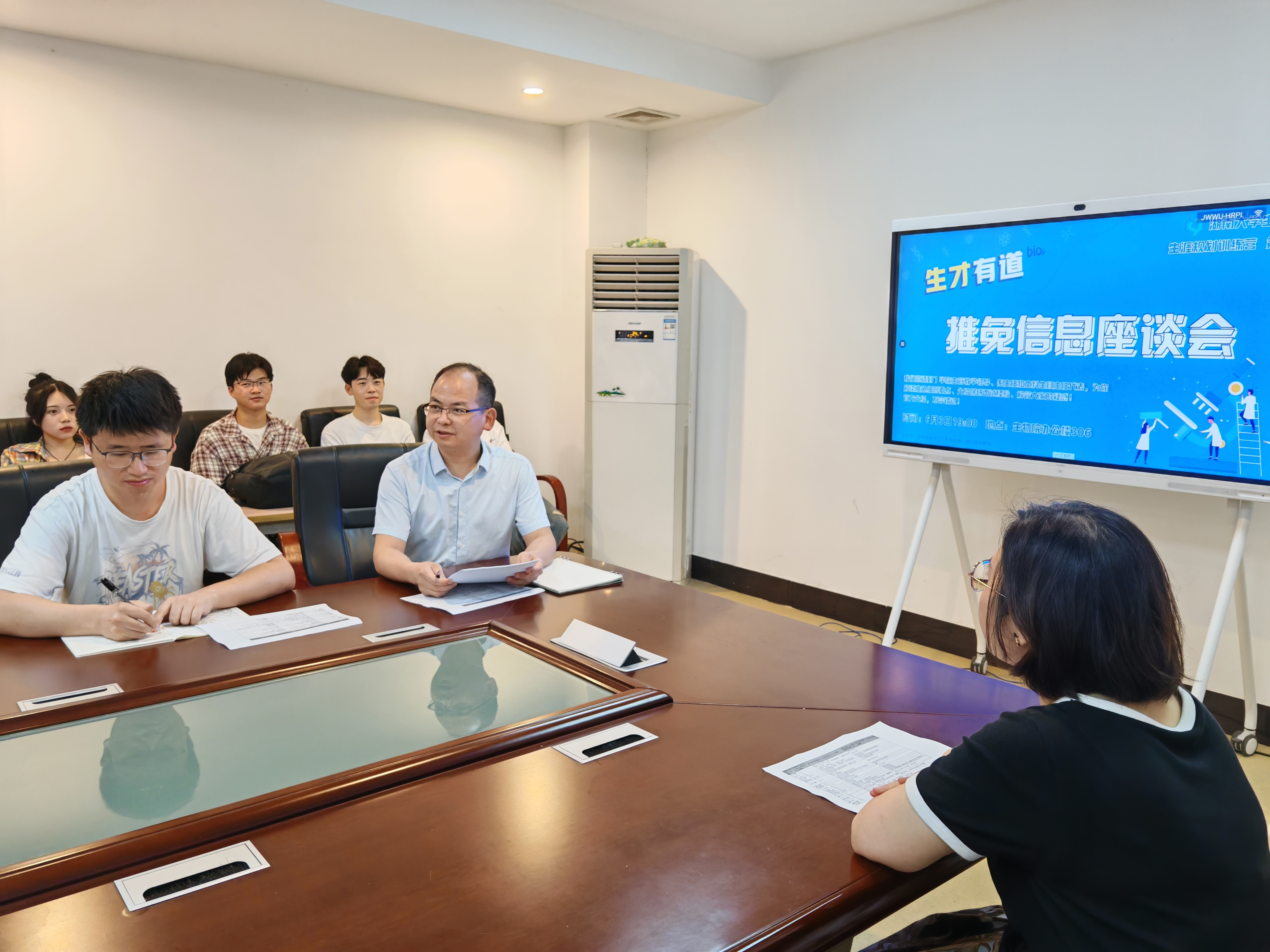6月3日晚,黄色导航 组织2021级学生开展推免信息座谈会,邀请学院副院长涂海军、副教授邱烨、副教授王奕蓉解读推免细则要点,介绍保研面试经验。活动共计30人参与。