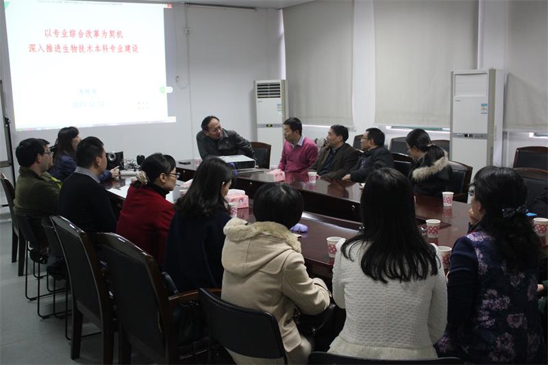 2015年12月25日,生命科学系在逸夫楼会议室召开全体教职员工会议,研讨生物技术专业综合改革,特邀学院教学副院长何晓晓教授,湖南师范大学生命科学学院陈良壁教授,隆平高科副总裁、湖南亚华种业科学研究院院长杨远柱研究员和湖南省农科院张德咏研究员莅临会议指导。