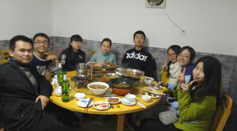 下午六点,生物技术1502班同学在天马园区门口集合,一起前往好呷婆家常菜馆。看得出,在寝室整顿过后,大家都精神满满,对今晚的聚会充满了期待。文体委员李孝同学早已经预定好了饭菜和座位,同学们做在餐桌旁,有的快乐聊天,有的大快朵颐,最后更是一起玩起游戏来。游戏规定数字中带有3和7的倍数的同学不能说出这个数字而是必须敲碗,游戏过程中,总有同学频频出错,被大家称为“游戏黑洞”,对于这样的“黑洞”同学,可不能白白放过,他们也因此收到了真心话大冒险和罚酒一类的小惩罚。后来游戏更是升级到3和7两个数字都不能说了,面对这样的“头脑风暴”,大家都聚精会神,生怕出一点点错误,一个小小的简单游戏大家玩得不亦乐乎。