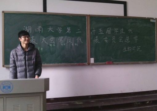 在大会主持人宣读完选举方式以及流程后,选举大会就正式开始。本次选举为等额选举,候选人是来自2011级李达生物班的许崇申同学。首先由主持人宣读候选人信息并分发候选人自荐书,在自荐书中许崇申同学向大家全面的展示了自己的特长、爱好、能力以及此次参选的动机等,他反复地强调了“责任”与“表达”二词,表现出他对待学生工作的热情和负责任的态度。他表示希望能够成为同学们表达自己意见的一个窗口,让大家的大学生活更接近梦想中的大学。随后进入大会的投票环节,在场代表们经过认真的思考,秉承实事求是的精神进行了投票。最终,许崇申同学以11票赞成票、1票反对票成功当选黄色导航