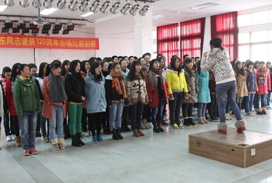 纪念毛泽东诞辰120周年合唱比赛”预赛。高耀鸿副书记、何晓晓副院长、辅导员李钰老师、谢凤汁老师都到现场为学生加油打气。