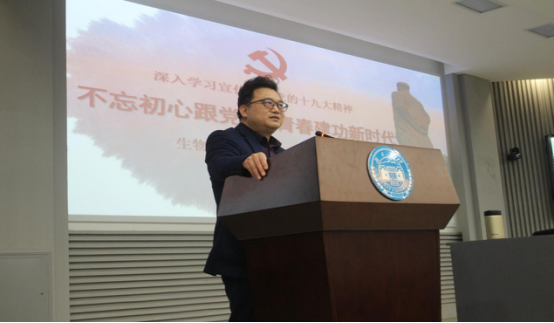 徐书记先向同学们介绍了党的十九大的主题、议程等基本情况,为接下来的深入讲课奠定基础。紧接着,徐书记又为同学们系统地介绍了中国特色社会主义进入新时代的三个“意味着”及在新时代形势下的新矛盾、中国共产党的历史使命、新时代中国特色社会主义思想等十九大的重要内容。在讲述过程中,徐书记多次引用习近平总书记的讲话,让同学们清晰地认识到中国共产党在新时代的使命及国家在未来的发展方向。在讲课过程中,徐书记还提出对同学们“风正扬帆当有为,勇做时代弄潮儿“的期望。这简洁有力的十四个字也让同学们深入认识到青年应紧跟着党走在时代前列,积极投身改革创新的时代潮流,彰显青年力量。