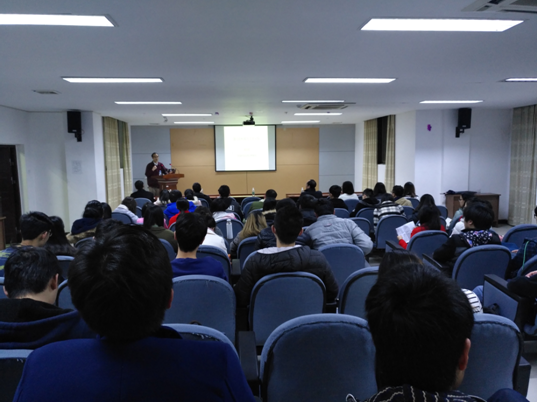 负一楼报告厅作了题为“蛋白质构象码及其应用”的学术报告。郑老师在报告中系统介绍了基于四肽段三个角度的分布所构建的一种蛋白质构象码,以及它在蛋白质比较、蛋白质结构快速联配和蛋白质序列分析方面的各种应用。郑老师的报告引起了参会者极大的兴趣,师生提出了自己的问题和看法,并与郑老师进行了细致的讨论与交流。
