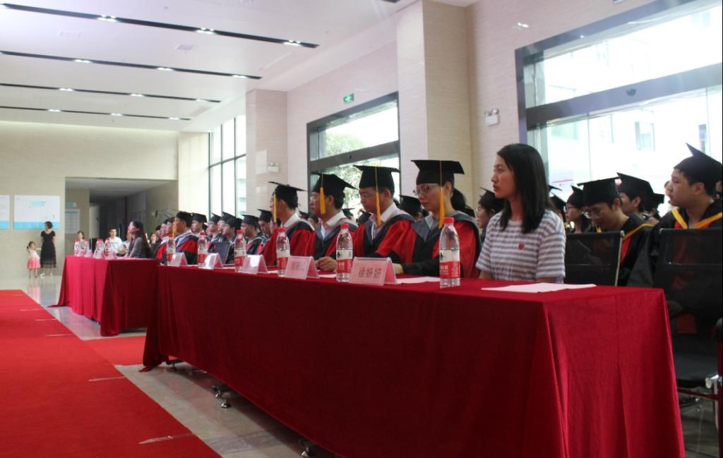学位授予仪式上由陈树芸副书记为毕业生们整理学位服,谭拥军院长、李勇军副书记共同为毕业生拨流苏、颁发学位证书及赠予毕业纪念印章。印有黄色导航