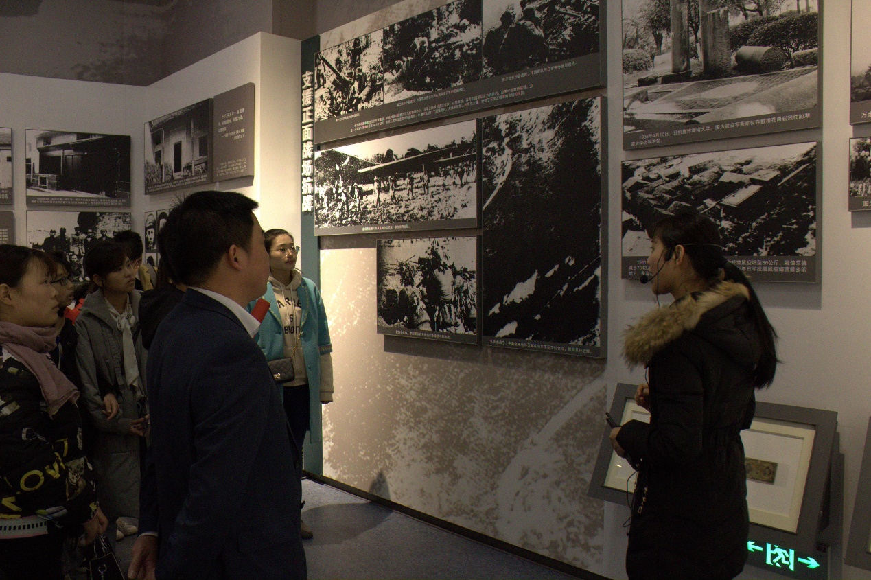 伴随着现场解说员的讲解,并配合文献资料、视频图像以及模拟场景的还原,大家无不追循着红色记忆,瞻仰为革命牺牲的先烈,感怀伟大的革命精神。一个个鲜活的历史镜头呈现在参与成员眼前,湖南军民英勇抗战、共同御敌、可歌可泣的动人事迹,体现的正是新一代青年需要传承与发扬的精神品质。