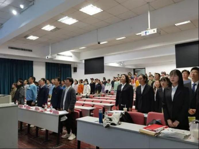 大会第一阶段,全体起立奏唱国歌。