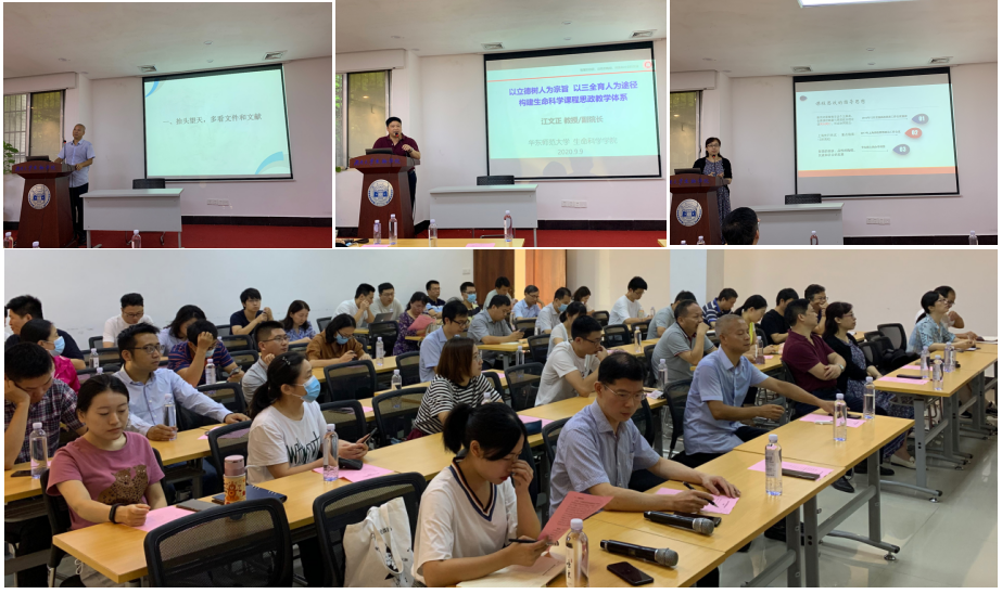 华东师范大学生命科学学院副院长江文正教授结合自身多年教学的经验和生动实例,做了“以立德树人为宗旨,以三全育人为途径,构建生命科学课程思政教学体系”的主题报告,报告从落实立德树人根本任务出发,结合高校育人的目标和任务,阐述了上海市、华东师范大学和华东师范大学生命科学学院在思政课程创新与课程思政探索方面的具体做法。