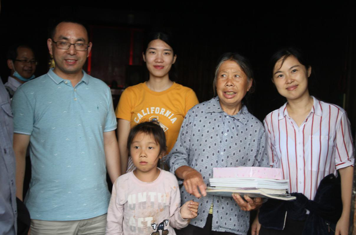 最后一站,是生命科学党支部的对口帮扶对象潘久才家。潘久才也是由于采石场的工作经历导致矽肺病,妻子夏满花患腰椎间盘突出不能从事重劳动,儿子只有初中文化在外务工,女儿尚在念初中。虽然家庭情况困难,但是潘久才一家还是充满了对未来生活的期许。家里的小女儿潘燕彬年纪虽小,却很想把书念好,但是由于小学基础较差,升入初中后语文和英语觉得吃力,此次的走访,也专门为她带去了大量的书本和课外书籍。在交流中了解到女儿有继续幼师专业学业的意向,支部书记赵小英也不断鼓励要支持女儿继续学业,实现梦想。