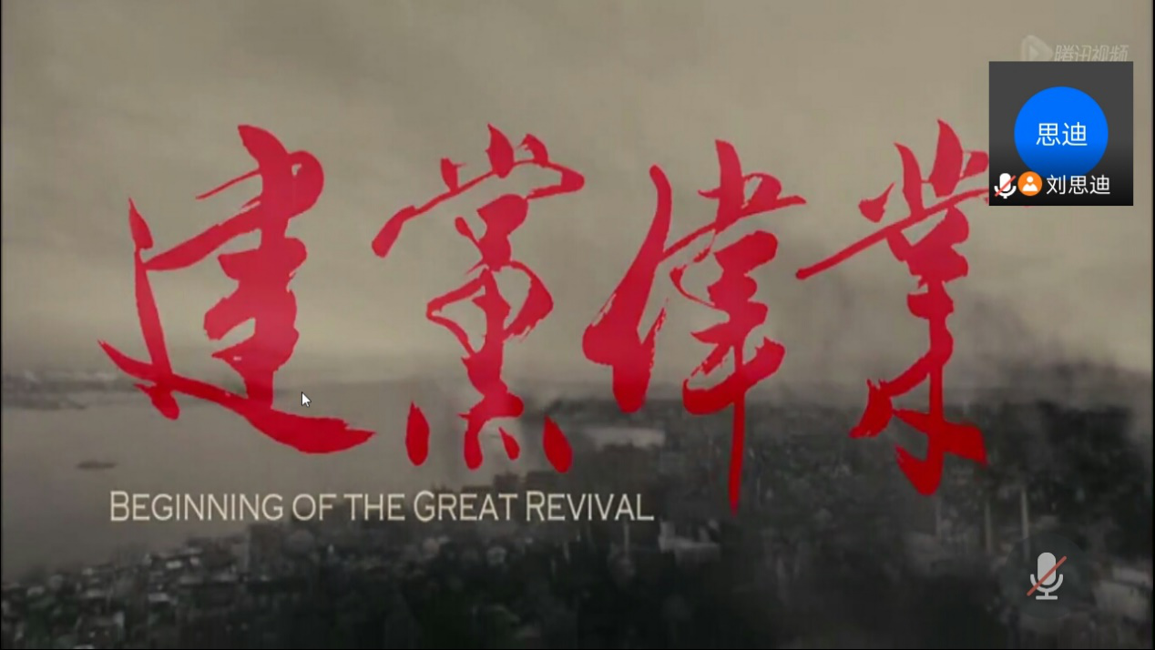 活动伊始,刘思迪同志通过对中国近代自鸦片战争以来,到旧民主主义革命再到新民主主义革命、中国共产党的成立等一些重要的历史节点的讲解和系列视频播放,生动地讲述了旧中国饱受列强压迫的屈辱历史,旧民主主义革命遭受的挫折,以及共产党在新民主主义革命中带领中国人民在黑暗中摸索并一步步走向光明的历史岁月。