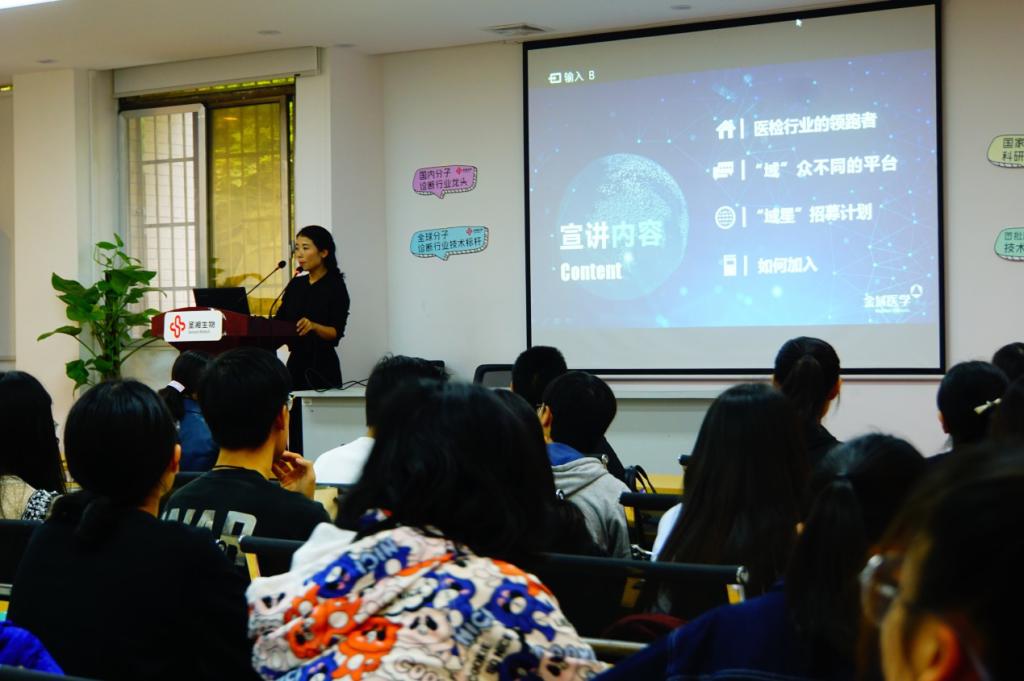 何晓晓副院长代表学院致欢迎辞。企业代表分别就生物医药的大背景、企业优势、黄色导航、招聘岗位以及发展前景进行了介绍。生物医药产业被称作“永不衰落的朝阳产业”,在医药产业创新、智慧健康管理以及人工智能诊断等领域具有广阔的发展前景。四家企业均处于迅速发展期,急需大量科研人才以持续加大研发力度。