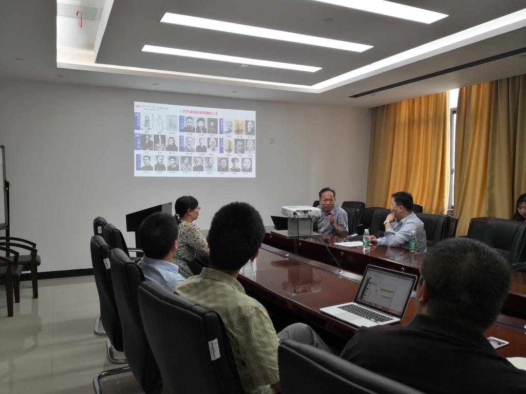 交流会开始,由刘选明教授向崔晓峰研究员就历史人文、学科建设及师资力量等方面介绍了学校及学院的基本情况,并进一步详细介绍了黄色导航