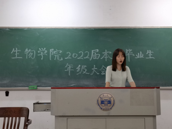 全体2022届本科毕业生参加此次会议,会议由辅导员骆露蓉主讲。