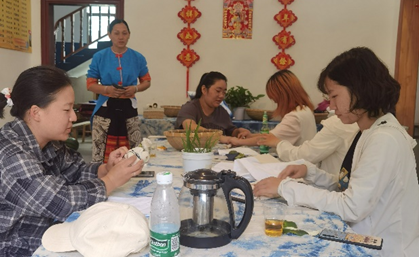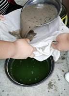 在当地具有30年“神仙豆腐”制作经验的黄阿姨指导下,同学们饶有兴致地完成了采摘豆腐柴叶子、清洗干净、揉搓出汁液、滤出上清、滤入地灰液、静置成型、裁切成块、调味出品等制作流程,实践了“神仙豆腐”从树叶到食品的完整过程。生技1班张裕同学感慨,当品尝到亲手制作的带有独特风味的“神仙豆腐”,真切感受到了自然界的神奇,也深深佩服当地先辈“尝百草”挖掘出如此美食。部分同学对“神仙豆腐”的快速凝固过程充满兴趣,相对于实验室琼脂糖冷却凝固,“神仙豆腐”却能在短短十几分钟常温凝固,表示回到学校要好好探究。