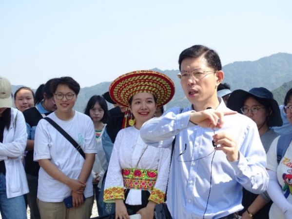 朱咏华和刘选明教授现场讲授多年来在该基地的科技帮扶、羊肚菌种植技术,同时听取了虎久雾语董事长谭德友讲述茶叶种植和深加工。同学们深感农产品高附加值需要科技赋能。