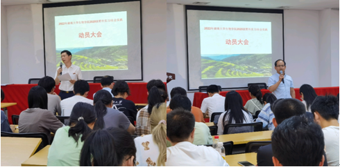近期,学院组织开展了2020级本科生的野外实习和社会实践活动。8月22日的动员大会上,学院李勇军书记和涂海军副院长分别发表讲话,对同学们寄予了厚望,期望同学们通过本次活动进一步巩固和提高课堂所学知识,增强理论联系实际的能力,培养吃苦耐劳的作风和团结协作的精神,立志为国家乡村振兴、人民生命健康贡献自己的专业本领。