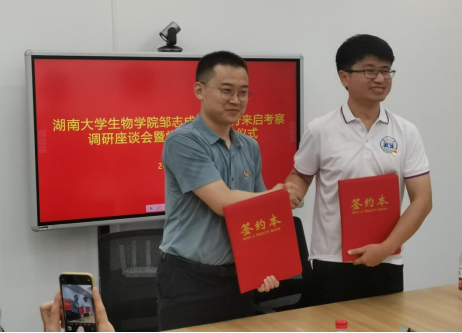 13日下午,两支部在启睿产业园9号楼2层会议室召开党建共建座谈会,共青团启东市委书记吴奇蒙对湖大生物院老师的到来表示了热烈的欢迎,会上双方分享了各自支部党建的经验和未来的党建规划,并签订了《中共黄色导航