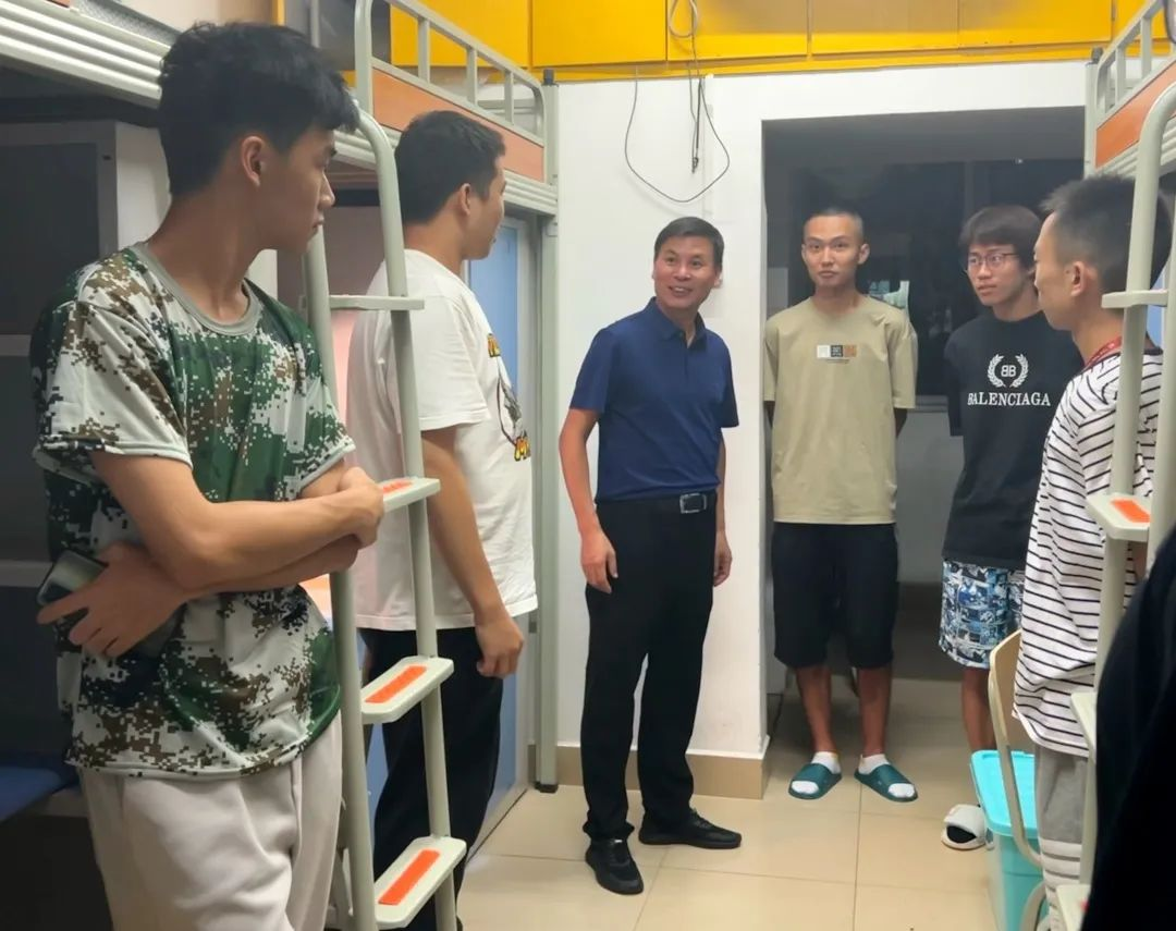 谭院长和邹书记来到本科新生男生宿舍,了解同学们的家乡,亲切询问同学们是否能够适应长沙的气候和饮食、宿舍生活是否顺利等;介绍了大学生活中学业规划、上课通勤、食堂环境等各个方面,为新生答疑解惑;列举往届学长学姐取得的优异成绩,激励大家充分利用大学时间,拼搏进取。