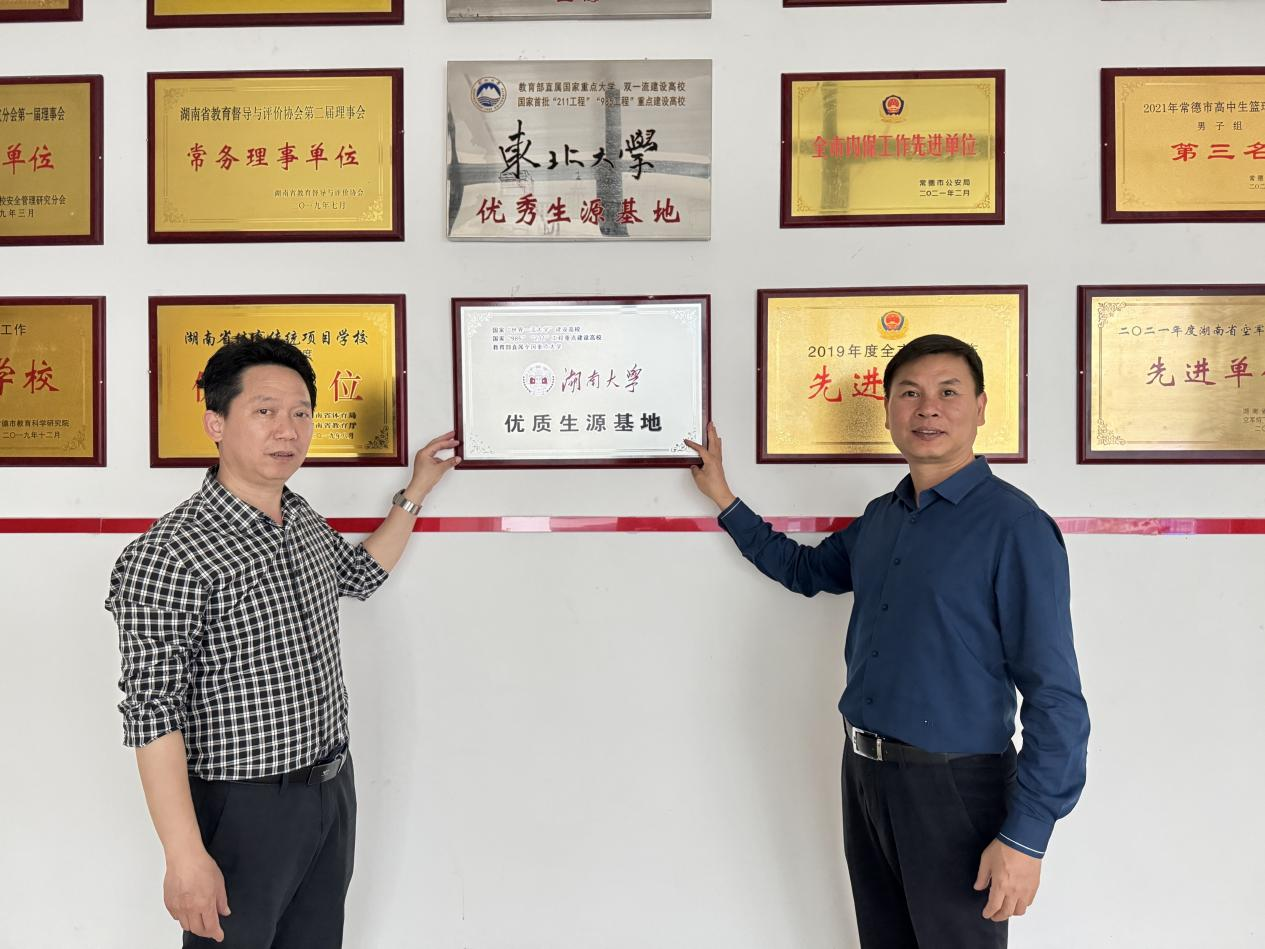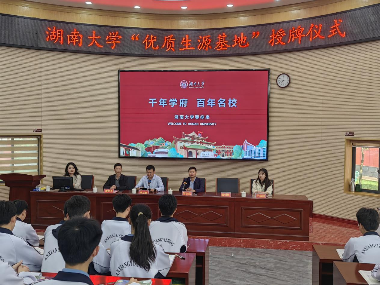 “优质生源基地”授牌仪式。会上,李立新介绍了安乡一中的历史发展情况与近年来高考情况,表示希望两校加强持续联系,通过开展学术讲座、实地研学等方式,为黄色导航