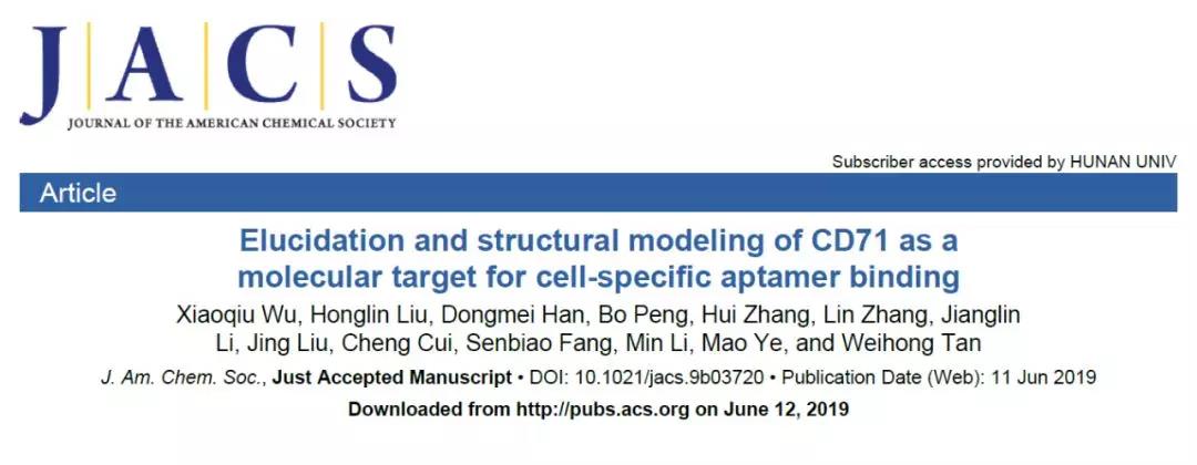 叶茂/谭蔚泓团队在J.Am. Chem. Soc杂志发表了题为“Elucidation andstructural modeling of CD71 as a molecular target for cell-specific aptamerbinding”的研究论文,系统地阐明了胰腺癌特异性核酸适体XQ-2d识别靶标的机制。
