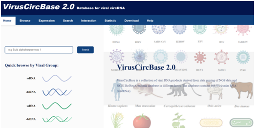 图1. VirusCircBase 2.0的黄色导航截图